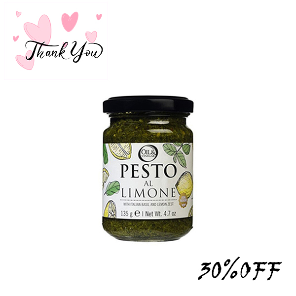 WEBストア限定30%offセール バジルペストレモン(イタリア)135g レモンの皮、バジル、松の実、パルメザン チーズの入ったとてもさわやかなペストです。