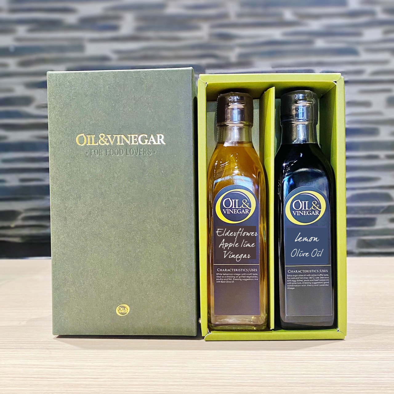 和食にも合うさわやかでフルーティーなセット。レモンオリーブオイル、エルダーフラワーアップルビネガー 各200ml