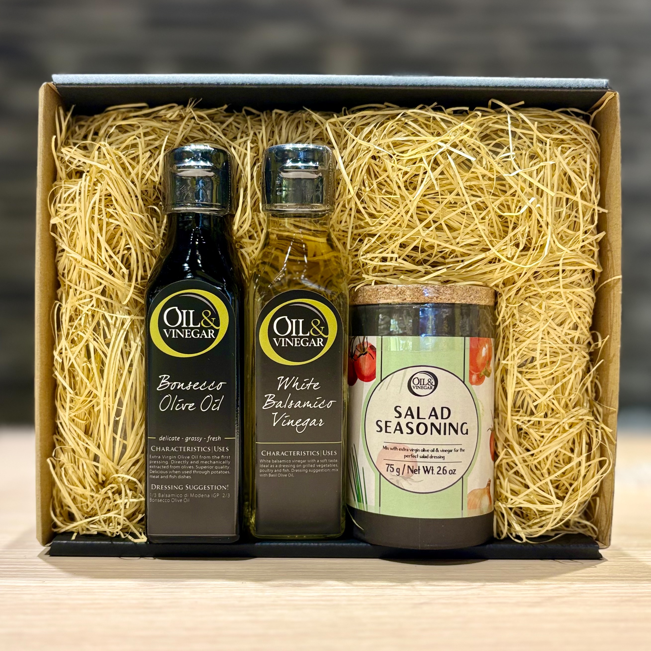 人気のオイルとビネガー、ハーブのセットです。イタリアンサラダのドレッシングに最適です。マリネ・ディップ・グリル・ピザ・パスタにも幅広くお使い下さい。