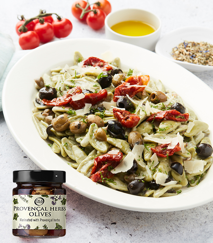 プロヴァンスのハーブと赤ワインビネガーに漬け込んだ種抜きのグリーンオリーブとカラマタオリーブの完璧なブレンドをお楽しみください。タイム、オレガノ、ローズマリー、マジョラムなど、厳選されたハーブが、一口ごとに風味豊かな味わいを生み出します。