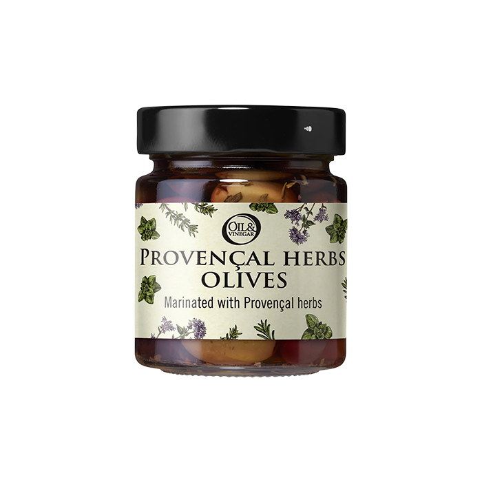 プロヴァンスのハーブと赤ワインビネガーに漬け込んだグリーンオリーブとカラマタオリーブの完璧なブレンドをお楽しみください。タイム、オレガノ、ローズマリー、マジョラムなど、厳選されたハーブが、一口ごとに風味豊かな味わいを生み出します。